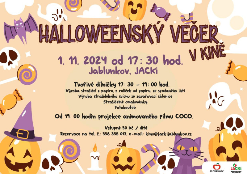 Milí rodiče a děti, srdečně vás zveme na Halloweenský večer, který se uskuteční v pátek 1.11.2024 od 17:30 hodin v Jablunkovském centru kultury a informací!